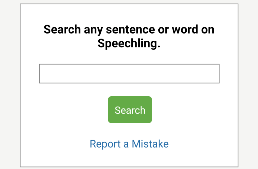 I really like this section, too! With the “Search” tab, you can enter anything into that box and Speechling will deliver all the words, phrases, and sentences they have that include or are related to what you search.