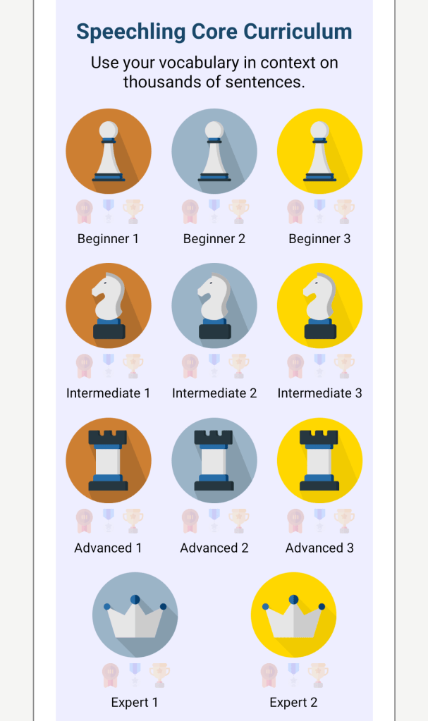 Here you can see the activities you’ve already completed at your current settings (i.e. the language you’re learning and your level), both in Speak Mode and Understand Mode.
